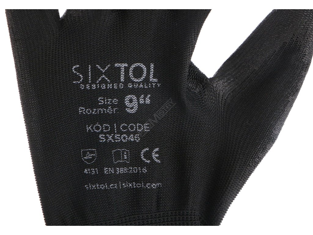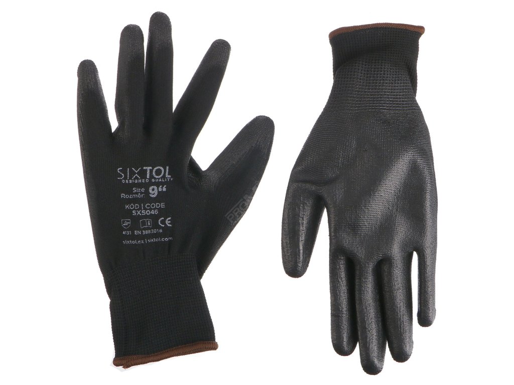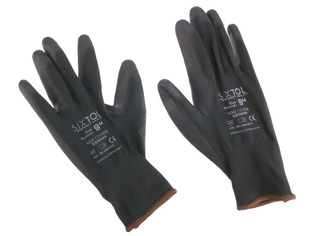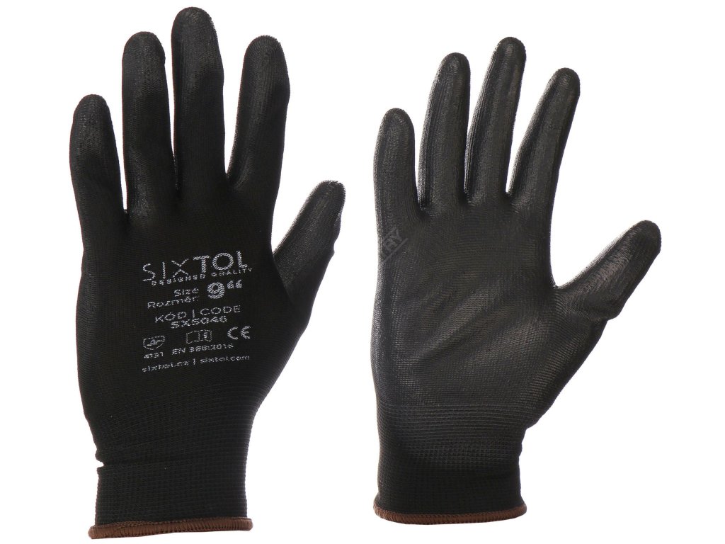 Pracovní rukavice z polyesteru polomáčené v polyuretanu SIXTOL GLOVE PE-PU 9, černé, velikost 9" SIXTOL