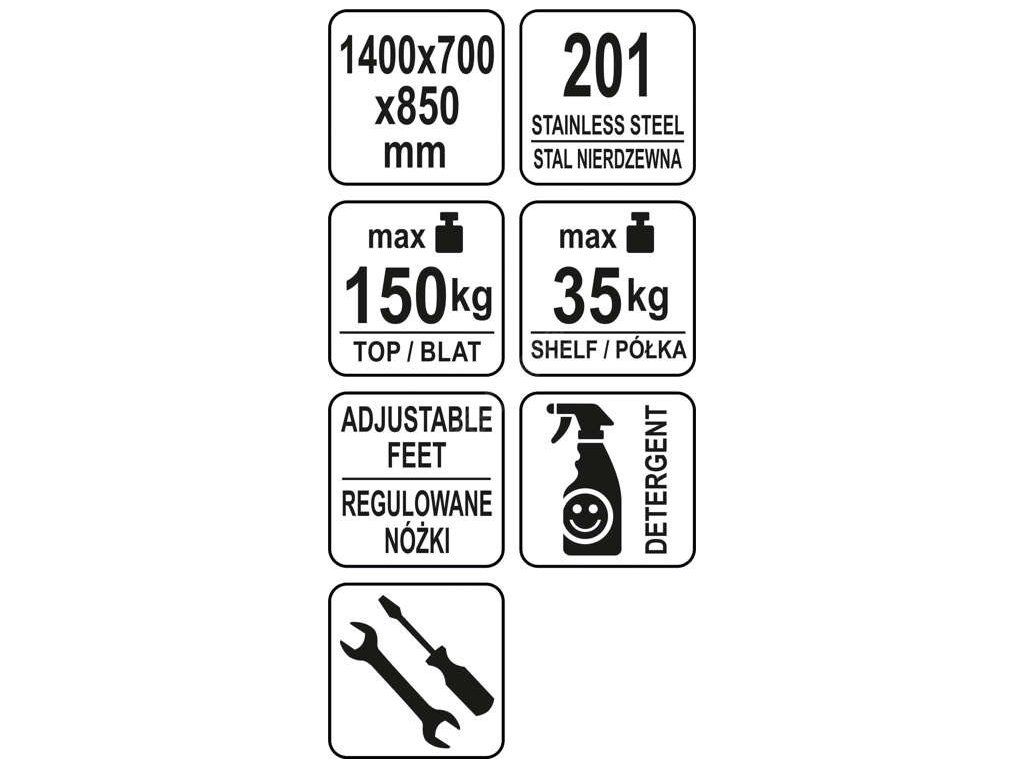 Pracovní stůl 140×70 v. 85cm Yato Gastro YG-09012