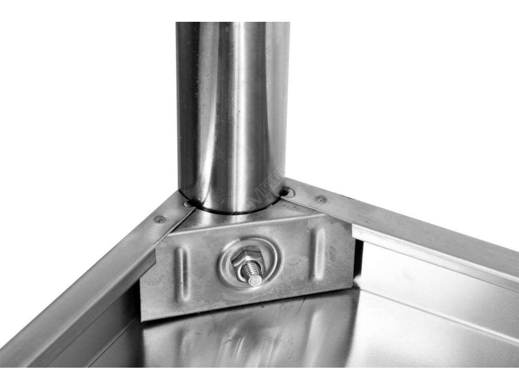 Pracovní stůl s policí je vyroben z vysoce kvalitní nerezové oceli 201, přizpůsobené pro použití v gastronomii v podmínkách intenzivního používání. Pečlivě vyrobené svařované spoje a hladké povrchy umožňují velmi snadné čištění.