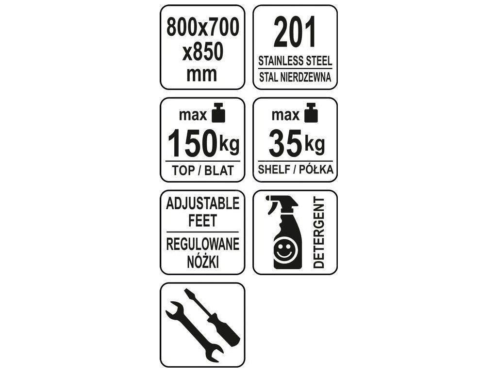 Pracovní stůl 80×70 v. 85cm Yato Gastro YG-09006