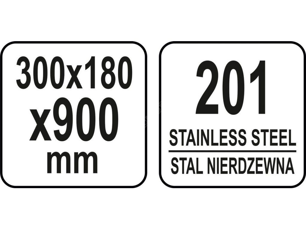 Police YATO jsou vyrobeny z vysoce kvalitní nerezové oceli, díky čemuž je čištění velmi snadné a rychlé. Navíc mají vzadu 35 mm vysoký okraj, aby se mezi poličku a zeď nedostaly nečistoty. Na bocích jsou instalovány výztužné konzole, které dále zvyšují nosnost police.